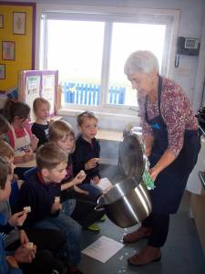 Cunningsburgh School’s primary three and four pupils were treated to a seafood class delivered by author and chair of Shetland Food and Drink, Marian Armitage…